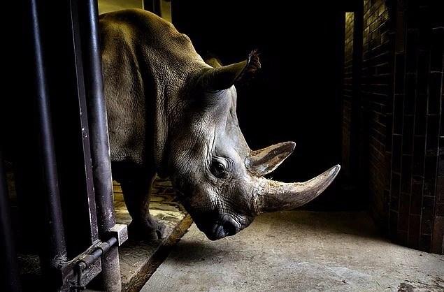 Dünyada 7 tane kalan Beyaz Kuzey Gergedanları'ndan birisi Çek Cumhuriyeti'nde bir hayvanat bahçesine taşınırken (2009)