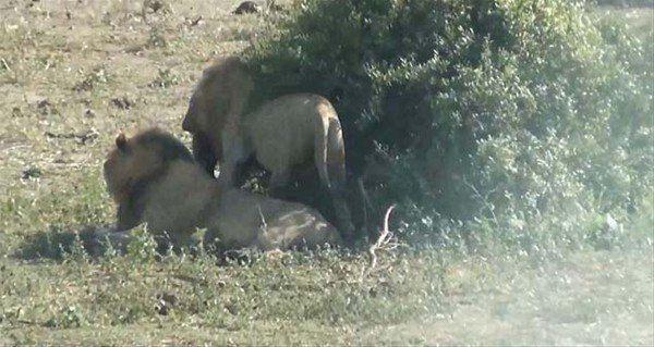 En taze et kokusu alan aslan cenini söküp aldı.Cenini çalının arasına götüren aslan kısa sürede mideye indirdi.