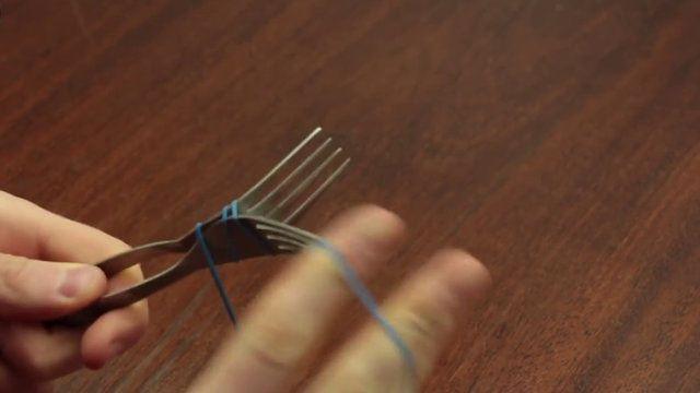 İki çatal yada kaşığı lastik bantlar ile tutacak haline getirebilirsiniz.