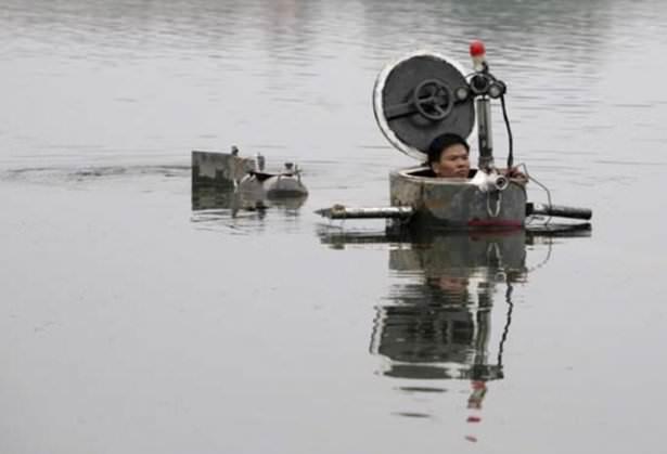 Çinli amatör mucit Tao Xiangli evyapımı denizaltısını Pekin'deki bir gölde başarıyla denedi.