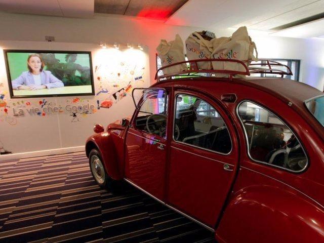 Fransa'nın başkenti Paris'teki ofisin içinde ise bir Citroen 2CV bulunuyor. Çalışanlar bu arabada film izleyebiliyor.