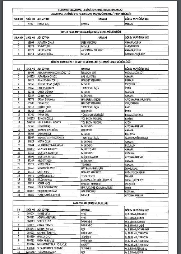İhraç ve iadelerin tam listesi