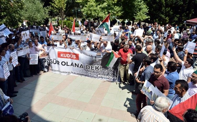 Eskişehir Kardeşlik Platformu üyeleri, çeşitli sloganlar atarak, İki Eylül Caddesi'nden Porsuk Bulvarı'na yürüdü.