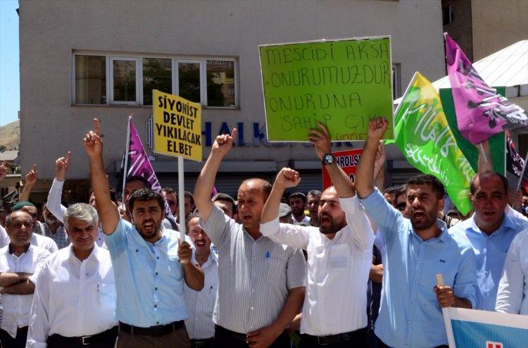 Bitlis'te Eğitim Sağlık Yardımlaşma ve Dayanışma Derneği (BEST-DER), Müslümanların ilk kıblesi Mescid-i Aksa'yı ibadete kapatan İsrail'i kınadı. Cuma namazı sonrası ellerinde pankartlarla Ulu Cami önünde toplanan kalabalık, tekbir getirip slogan atarak İsrail'e tepki gösterdi.
