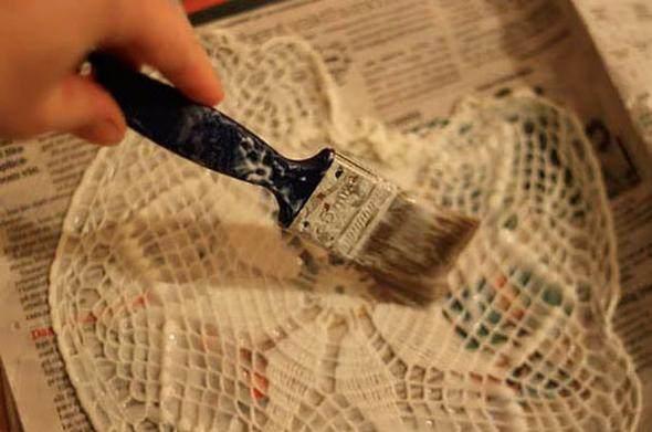Dantel örtüye yapışkanı sürüyoruz; şimdi bambaşka bir şey için işimize yarayacak!