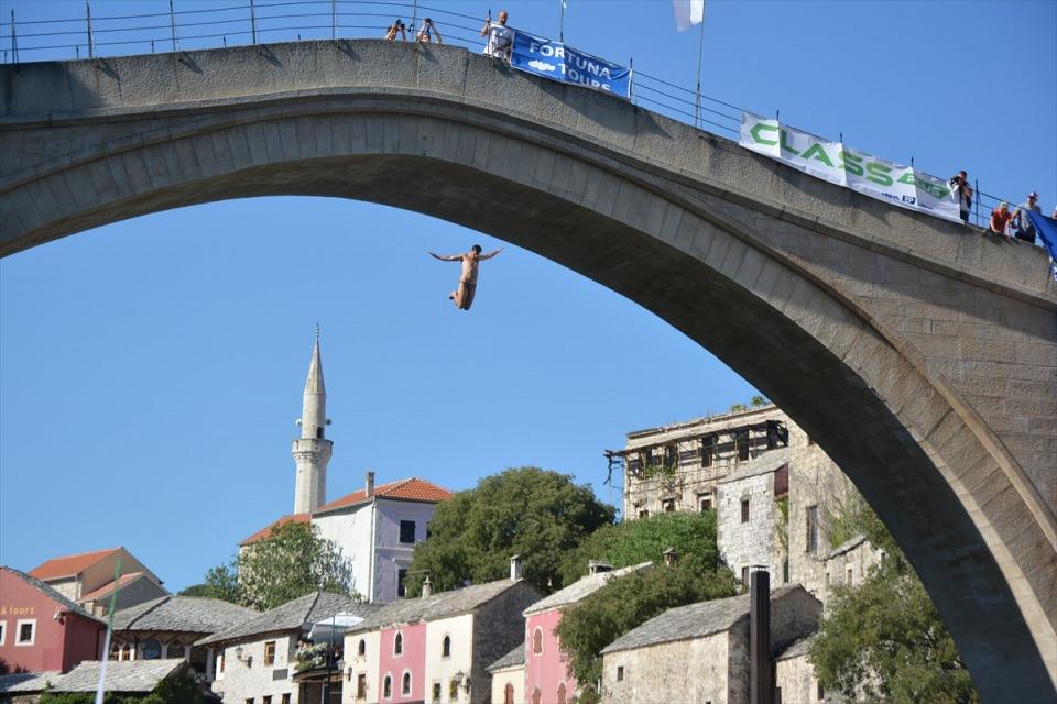 Mostar Köprüsü, Türkiye'nin girişimleriyle aslına uygun olarak 2004'te yeniden inşa edilmişti. Mostar Köprüsü'ndeki atlama yarışlarına Evliya Çelebi Seyahatnamesi'nde de yer veriyor.