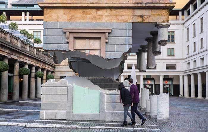 Optik illüzyonla havalanmış gibi görünen bina, görenleri hayretler içinde bırakıyor.