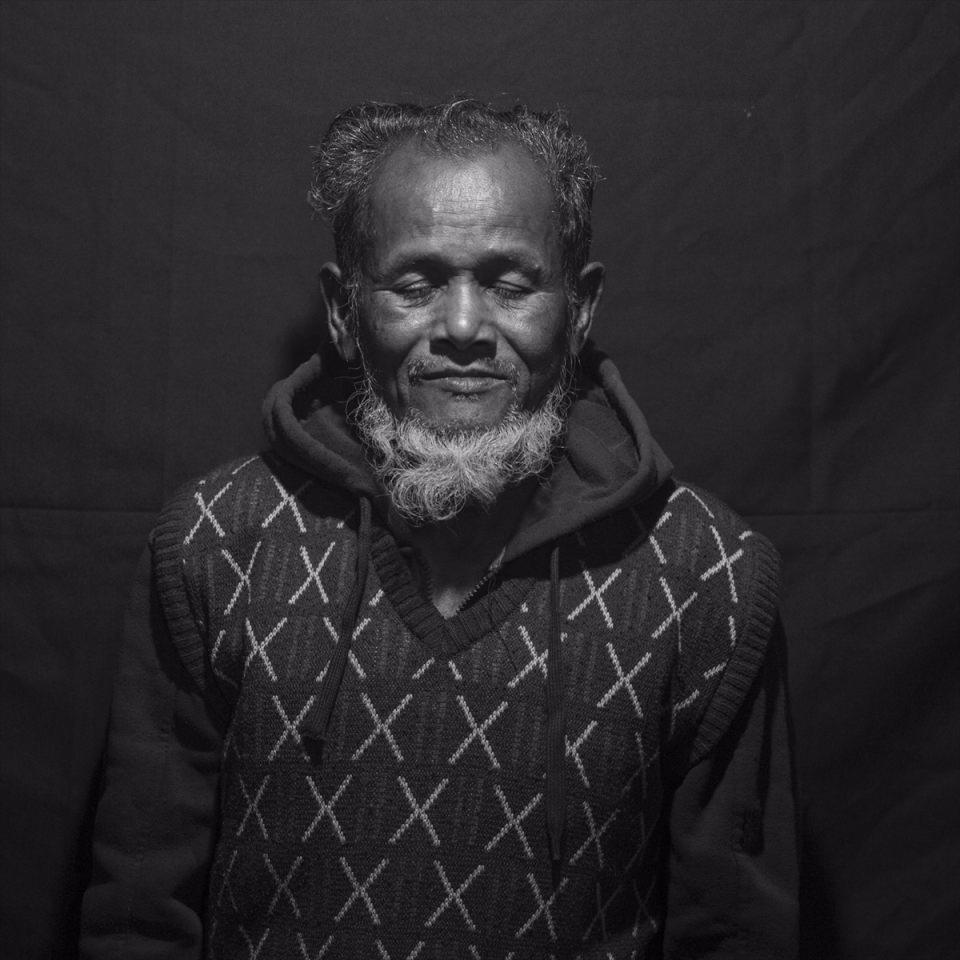 Eşi ile yaşadıkları Ula Pe köyünde balıkçılık ile uğraşan ve Yeni Delhi'ye gelen 64 yaşındaki Mia da (fotoğrafta), Myanmar'daki şiddetten kaçanlardan biri ve dünyanın onları görmezden geldiğini anlatabilmek adına o da dünyaya gözlerini kapatarak poz veriyor.