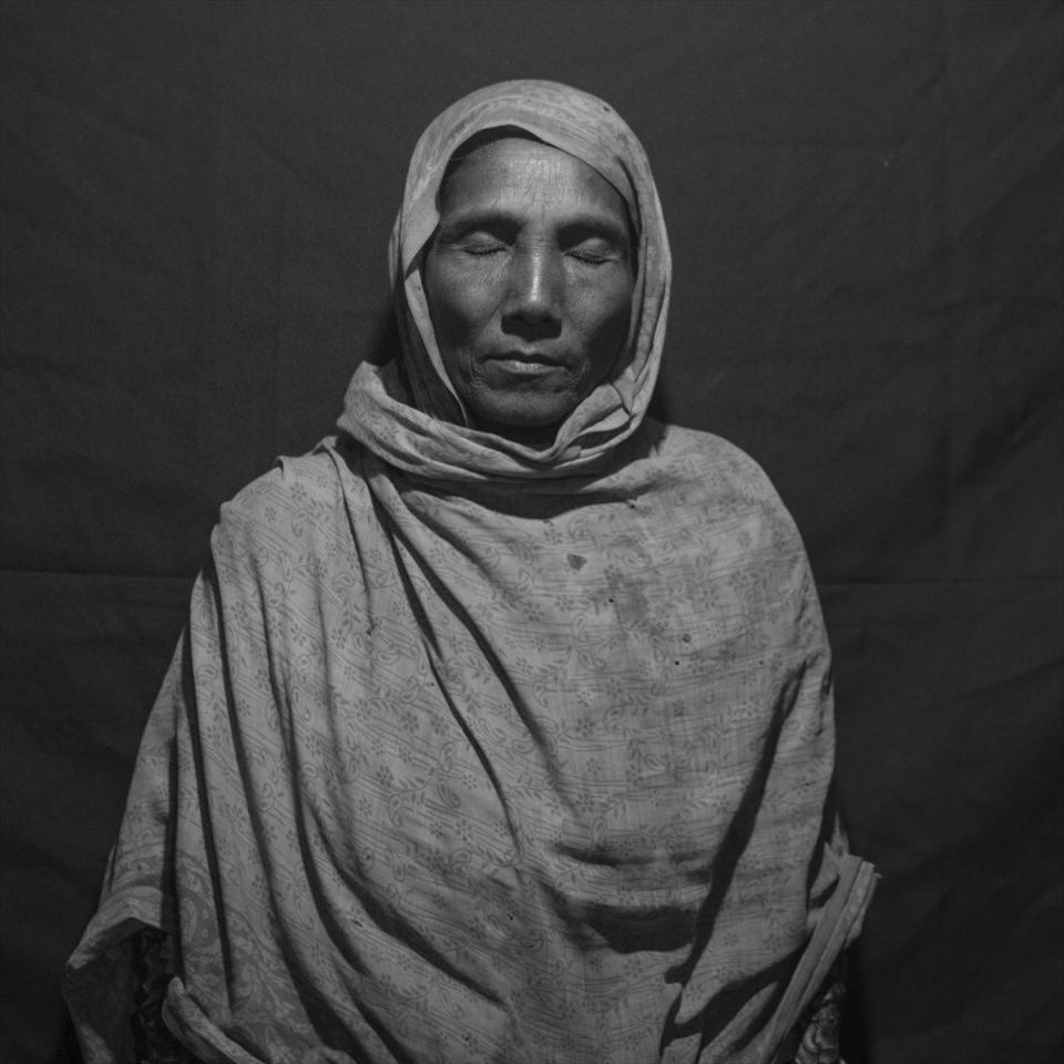 Eşi ile yaşadıkları Ula Pe köyünde balıkçılık ile uğraşan ve Yeni Delhi'ye gelen 60 yaşındaki Roema da (fotoğrafta), Myanmar'daki şiddetten kaçanlardan biri ve dünyanın onları görmezden geldiğini anlatabilmek adına o da dünyaya gözlerini kapatarak poz veriyor.