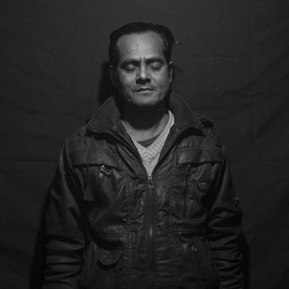 Yeni Delhi'ye gelmeden önce Buthidaung kasabasındaki sebze dükkanında çalışan 40 yaşındaki Kareem de (fotoğrafta), Myanmar'daki şiddetten kaçanlardan biri ve dünyanın onları görmezden geldiğini anlatabilmek adına o da dünyaya gözlerini kapatarak poz veriyor.