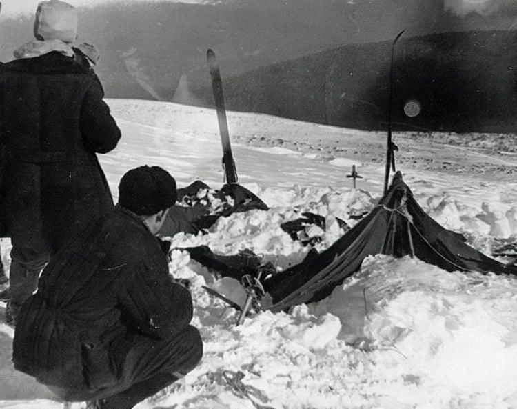 Çadırdan 1.5 km uzaklıkta bir nehir kenarında karın üzerinde sırtüstü yatarken bulundular. Önce grubun lideri olan 23 yaşındaki Igor Dyatlov'un cesedi teşhis edildi. Adı bu trajik olaya verilecekti. Ardından 10 santim yüksekliğindeki karın altında 22 yaşındaki Zina Kolmogorova'nın ve Rüstem Slobodin'in cesedine ulaşıldı. Cesetlerin hepsi yaklaşık 180 metre uzaklıkta bir hat üzerinde bulundu. Uzmanlar, gençlerin sıra halinde birbirini takip ederek çadıra ulaşmaya çalıştığı ancak başarılı olamadığı yorumunu yaptı.