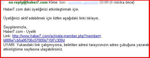 3-Gönder butonuna bastıktan sonra. Sistem doğrudan sizi Haber7com ana sayfasına yönlendirecektir. Üyeliğinizin aktif olması için üye olurken bildirdiğiniz mail adresinize bir aktivasyon kodu gönderilecek. Koda tıklayıp ya da browsera yapıştırdığınızda tekrar Haber7com ana sayfasına yönlendirilirseniz üyeliğiniz aktif olmuş demektir.