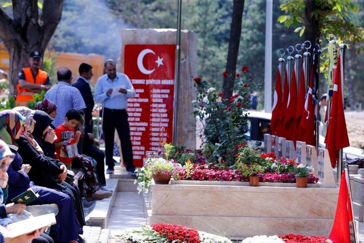 Bazı şehit yakınlarının mezarlar başında gözyaşı döktükleri görüldü.
