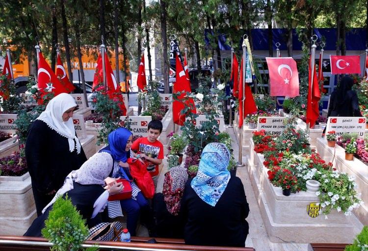 15 Temmuz Derneği üyeleri ve şehit yakınları, Karşıyaka Mezarlığı'ndaki 15 Temmuz şehitlerinin kabirlerini ziyaret etti.