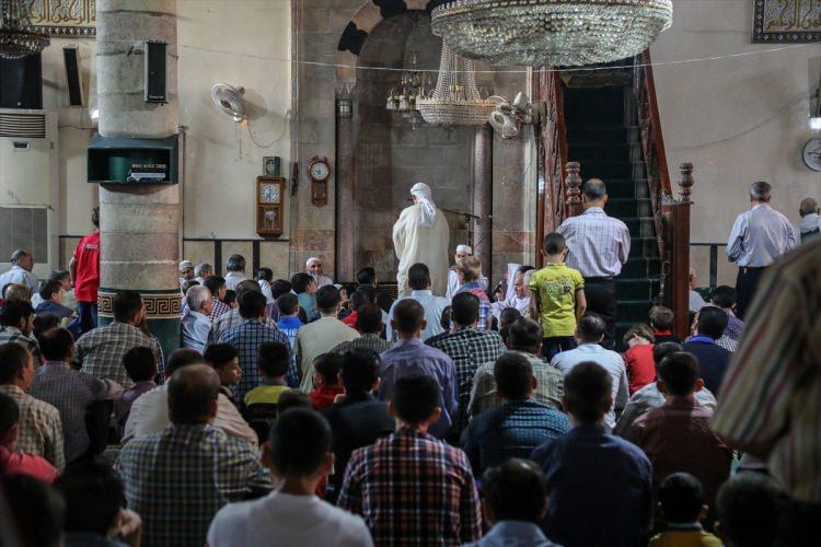 Suriye'de başkent Şam'ın Doğu Guta'da bölgesine bağlı Arbin beldesindeki vatandaşlar, Kurban Bayramı namazını Büyük Arbin Camii'nde kıldı. Vatandaşlar, namaz sonrası bayramlaştı