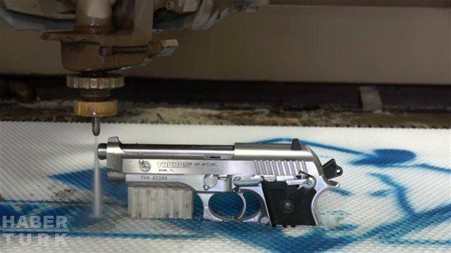 Baba-oğul, aldıkları tabancayı ortasından ikiye keserek içinde ne olduğunu izleyenlerine gösterdi.