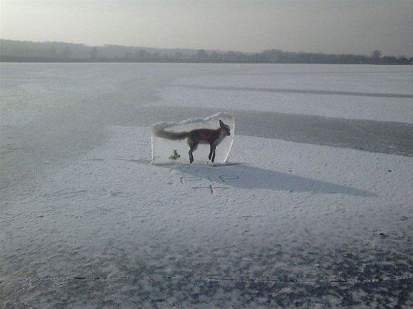 Gölde donan bir tilki
