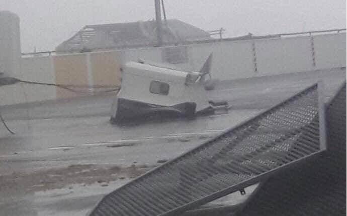 Kasırga alandaki uçakları tersine çevirdi, beraberinde getirdiği kaya ve taş parçaları da dahil uçuşan her türlü nesne alandaki uçakları parçaladı ve terminal binasını da neredeyse yıktı.