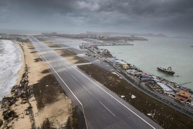 Havaalanının yakınındaki Maho Plajı da yükselen suların altında kaldı ve kasırga plajda bulunan her şeyi sürükleyip götürdü.