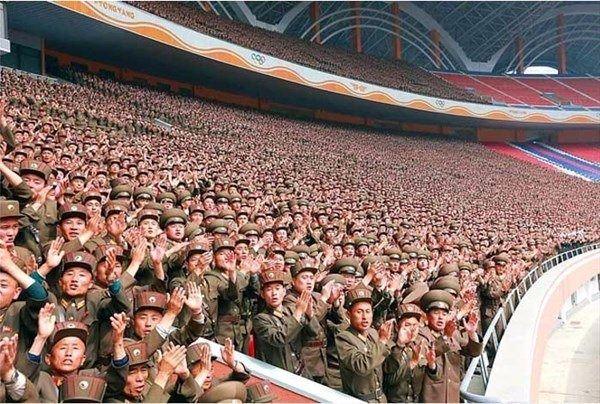 Kore Halk Ordusu üyeleri Kim Jong Un için tezahürat yapıyor.