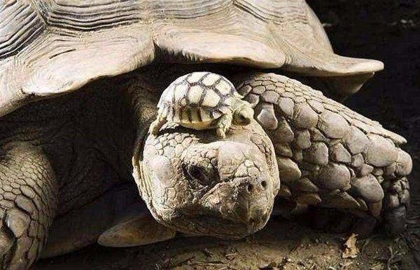 140 yaşındaki bir kaplumbağa ve 5 yaşındaki oğlu.