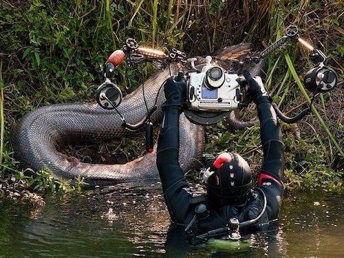 Su altı hayvanları kemirgenler ve kuşlarla beslenen dev yılana yaklaşmak bile cesaret istiyor.