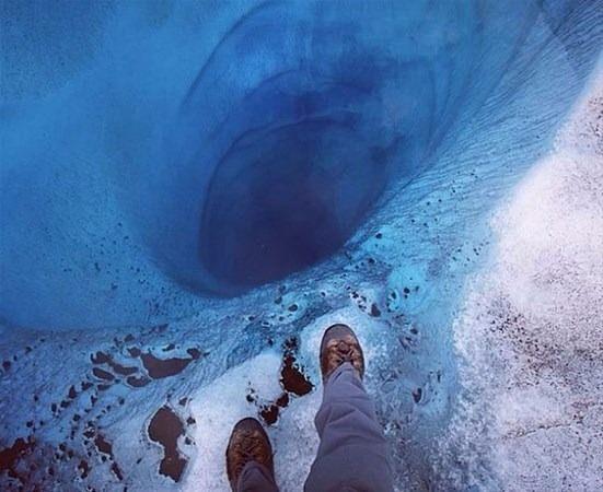 Alaska'daki 300 metre derinliğindeki deliğin üzeri yalnızca berrak bir buz katmanıyla kaplı.