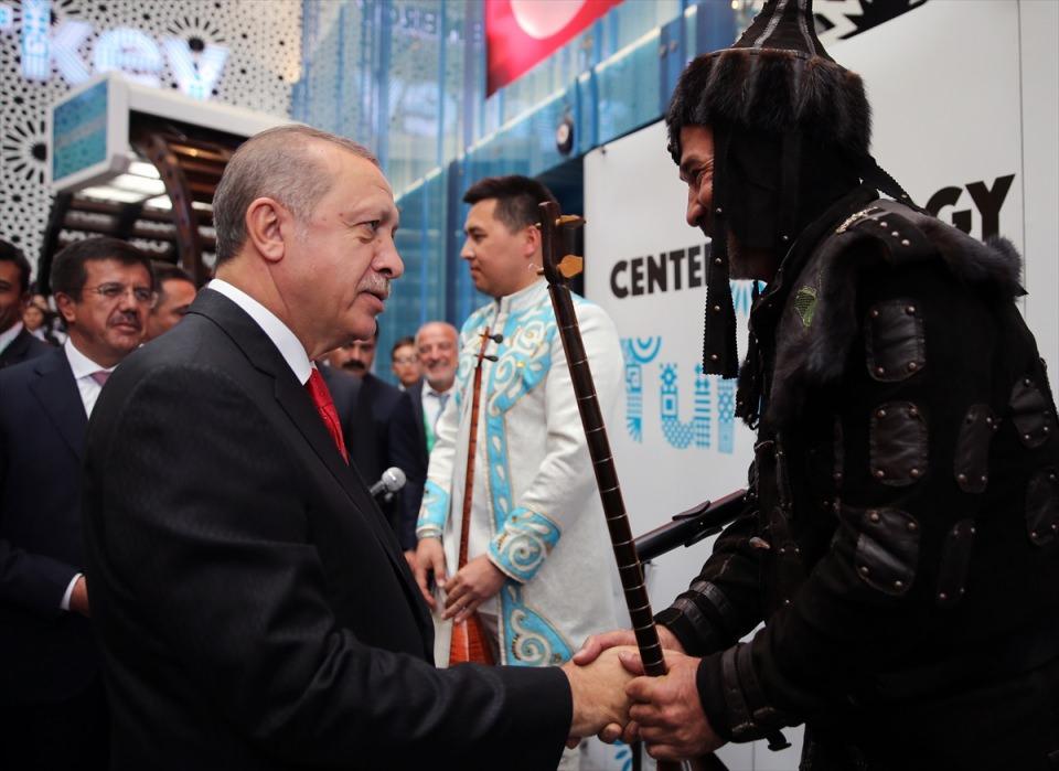 Kazak sanatçı Arslanbek Sultanbekov ile bir süre sohbet etti.