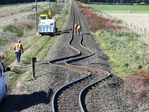 2010'da Yeni Zelanda'da meydana gelen depremin ardından hasar gören demiryolu
