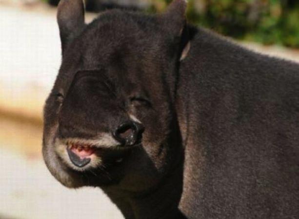 Bu sevimli tapir burnunun esnekliğini göstererek kameraya gülümsüyor.