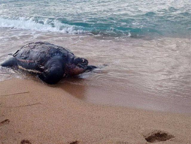 Nesli tükenme tehlikesi altındaki deniz kaplumbağası İspanya'nın Calella şehri açıklarında öldükten sonra kıyıya vurdu.