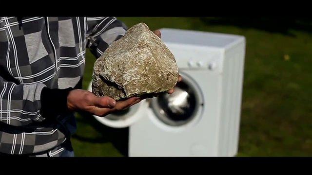 İşte çalışır haldeki çamaşır makinesine taş atıldıktan sonraki hali...