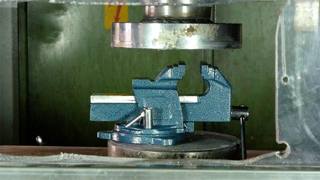 Hidrolik pres makinesinin altına konulan objelerin ezilme görüntüleri sosyal medyada izlenme rekoru kırıyor.