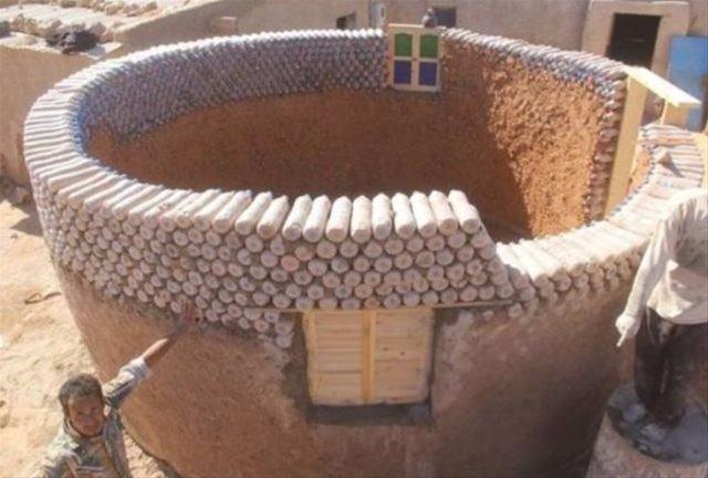 İÇİ KUM DOLU PET ŞİŞELERLE KENDİ EVİNİ YAPTI!