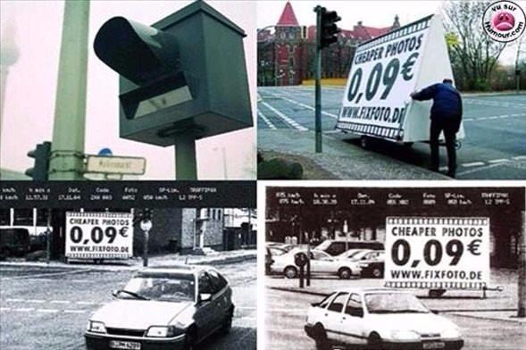 Hayatımız günlük mücadelerle devam ederken, karşımıza çıkan kimi sorunlara oldukça ilginç çözümler bulabiliyoruz. Örneğin, üstteki "fotoğrafçı", stüdyosunun reklamını yapmak için orijinal bir çözüm bulmuş. Polis kamerasının görüş alanına yerleştirilen ilan sayesinde, kırmızı ışıkta geçen, hız limitini ihlal eden sürücülere ceza faturalarıyla birlikte giden fotoğrafta stüdyosunun ilanı da yer alıyor.