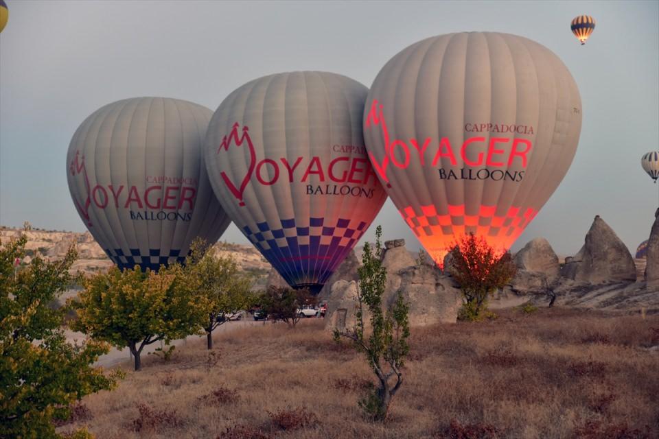 Sıcak hava balonculuğunun dünyadaki önemli merkezlerinden biri olan Kapadokya’da balon turlarına katılan ziyaretçiler, bölgenin sonbahar güzelliğini gökyüzünden de görerek fotoğrafla ölümsüzleştiriyor.