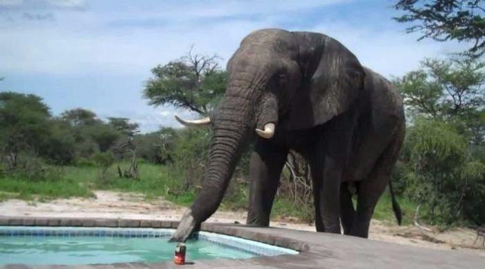 Afrika 'da susuz kalan bir filin yüzme havuzunun yanına gelerek buradan hortumuyla su çekmesi hayvanların da sıcaktan olumsuz etkilendiklerine en son örnekti.