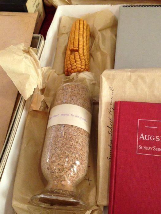 Paketin içerisinden döneme ait çeşitli eşyalar, tohumlar, paketin gömüldüğü güne ait gazeteler ve ve konverve yiyecekler çıktı.
