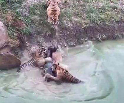 Eşek ne kadar kurtulmaya çalışsa da aç kaplanlara burada yem oluyor.
