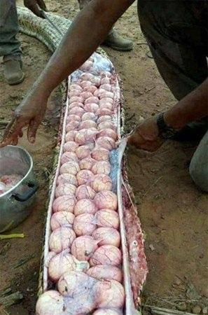 Nijerya'da yaşanan olayda basına konuşan köylüler, yılanın çiftçilerin besledikleri hayvanlara dadandığı iddiası üzerine dev sürüngeni öldürdüklerini açıkladı. Yılanın karnını açan köylüler şoke edici manzarayla karşılaştı. Buzağıyı yuttuğu için karnının şişkin olduğu sanılan yılanın karnında onlarca yumurta olduğu görüldü.