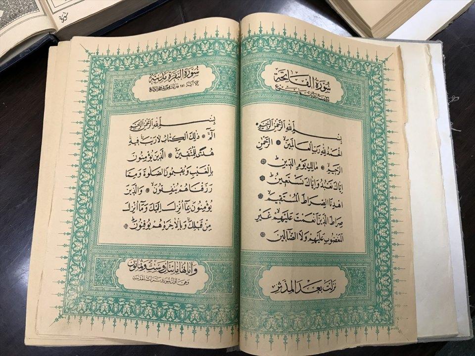 "Al-i Osman Sultanlarının medar-ı iftiharı, Sultan oğlu Sultan, Gazi Abdülhamid Han’ın (Allah onun mülkünü kıyamet gününe kadar daim eylesin) saltanatı döneminde kurulan Osmanlı Matbaasında, özellikle de insan takati nispetinde büyük bir ceht ile hizmet verilerek tashihi yapılmış ve İrade-i Seniyye (Padişahın yazılı fermanı) gereğince Şeyhülislamlık (Bab-ı Meşihat-i İslamiyye) bünyesinde kurulan Meclis-i Teftiş-i Masahif-i Şer'iyye tarafından tashih edilmiş ve ilk defa olmak üzere Matbaa-i Osmaniyye'de tab' olunmuştur. İşbu Mushaf-ı şerif Hüseyin Efendi'nin talebelerinden olup Kadırgalı olarak da bilinen el-fakir es-Seyyid Mustafa Nazif Efendi tarafından 1309 yılı Ramazan ayı sonlarında (miladi 1887 yılı) yazılmıştır."