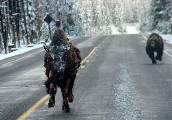 Boz ayıdan kaçarken sıcak su kaynağına düşüp haşlanmış bir bizon.