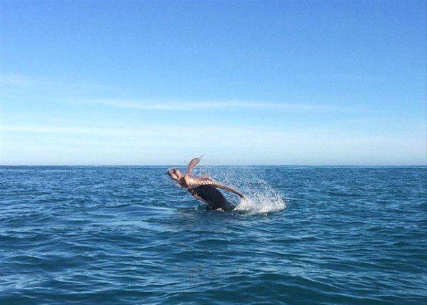 120 kiloluk bir deniz canavarına kafa tutan ahatapot fok balığına kolay bir yemek olmadı. Fok için ahtapotu parçalamak mı çiğnemek mi onun için daha zordu belli değil. Fok balığı ahtapottan sadece bir parça koparayı başarmıştı.