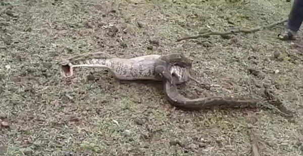 Avını dakikalarca bekleyen piton, saldırdığı geyiği tek seferde midesine indirdi.