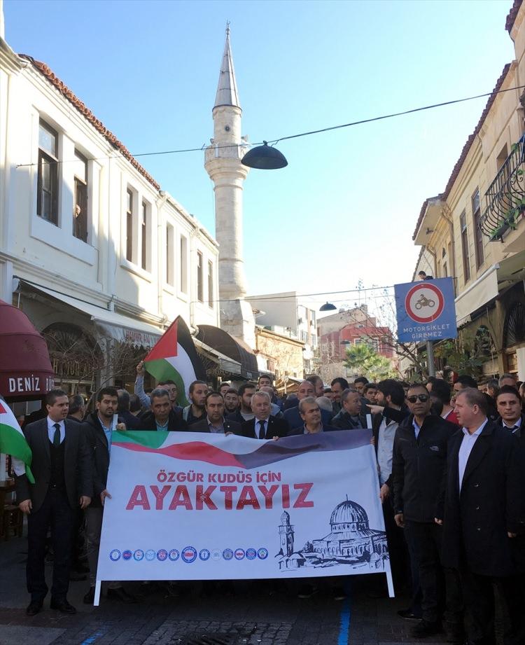 Çanakkale'de Yalı Camisinde kılınan Cuma namazı sonrasında toplanan kalabalık tarafından ABD'nin Kudüs'ü İsrail'in başkenti olarak tanıması protesto edildi.