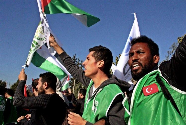 Mersin Üniversitesi öğrencileri, ABD'nin Kudüs'ü "İsrail'in başkenti" olarak tanıma kararını protesto etmek amacıyla, Yenişehir İlçesi Çiftlikköy Mahallesi'nde yer alan Çiftlikköy Camii'nde cuma namazı çıkışı bir araya gelerek yürüyüş düzenledi.