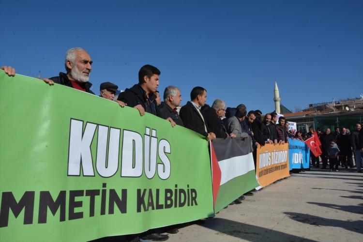 Kırşehir'de, bazı sivil toplum kuruluşları, ABD Başkanı Donald Trump'ın Kudüs'ü İsrail'in başkenti olarak tanıma ve Tel Aviv'deki büyükelçiliklerini Kudüs'e taşıma kararını protesto etti.