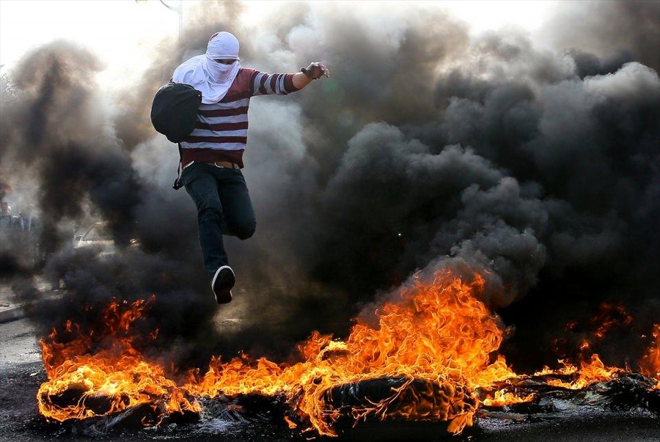 İsrail güçlerinin protestoculara müdahale etmesi üzerine Filistinliler taş atarak karşılık verdi.