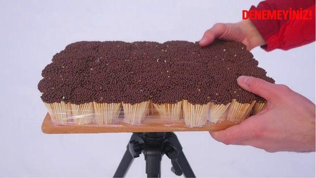 KİBRİT ÇÖPLERİ ÜZERİNDEKİ ÇAKMAKLARI ATEŞE VERDİ