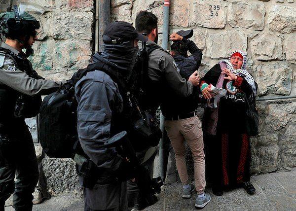 İsrail polisleri elinde Cumhurbaşkanı Erdoğan'ın posterini taşıyan Filistinli yaşlı kadını hedef alarak saldırdı.